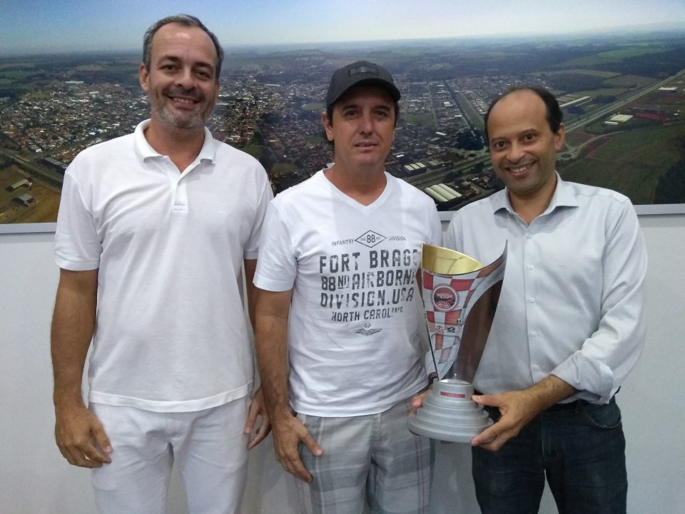 O atleta esteve no gabinete do prefeito Alexandre Araújo junto do vereador Luizão da Farmácia, onde trouxe seu troféu de campeão paulista.