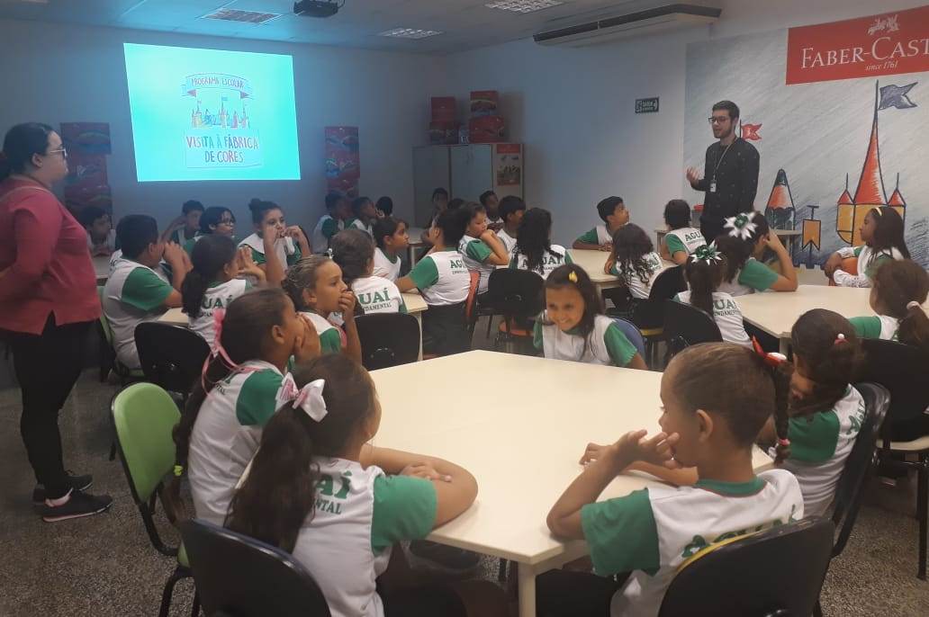 Eles foram recebidos na sede da empresa em São Carlos e conheceram a história de origem da fábrica, em seguida visitaram as instalações e viram como são fabricados os produtos. No final da visita os alunos foram presenteados com um kit da Faber Castell.