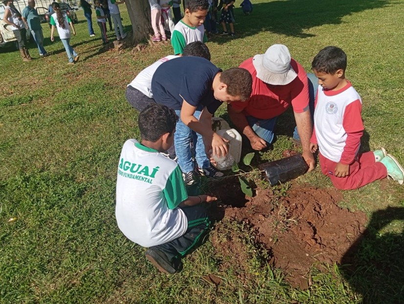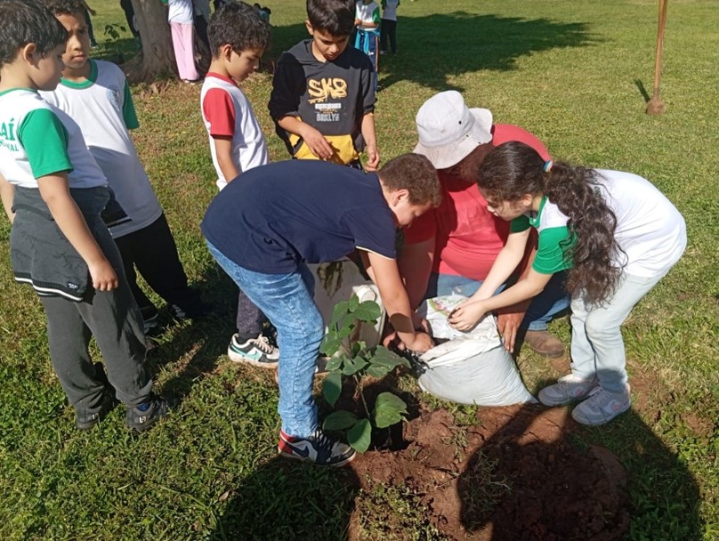 Em comemoração ao Dia Mundial do Meio Ambiente, os alunos do 3º e 4º anos da Escola João Silva, acompanhados da professora Ana Maria e da coordenadora pedagógica Marli Vasques, realizaram um plantio de mudas no Parque Interlagos e também na Praça da Matriz.