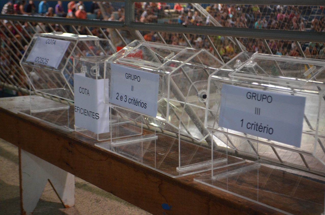 1.379 famílias tiveram suas inscrições efetivadas e destas, foram sorteadas as 181 mais 50%, que terão agora a documentação enviada para a Caixa Econômica para ser avaliada e para que haja comprovação de que os sorteados não tenham infrigido nenhum critério que constava no edital. Na ocasião também ocorreu à definição e sorteio das cotas exigidas em lei contemplando deficientes e idosos.