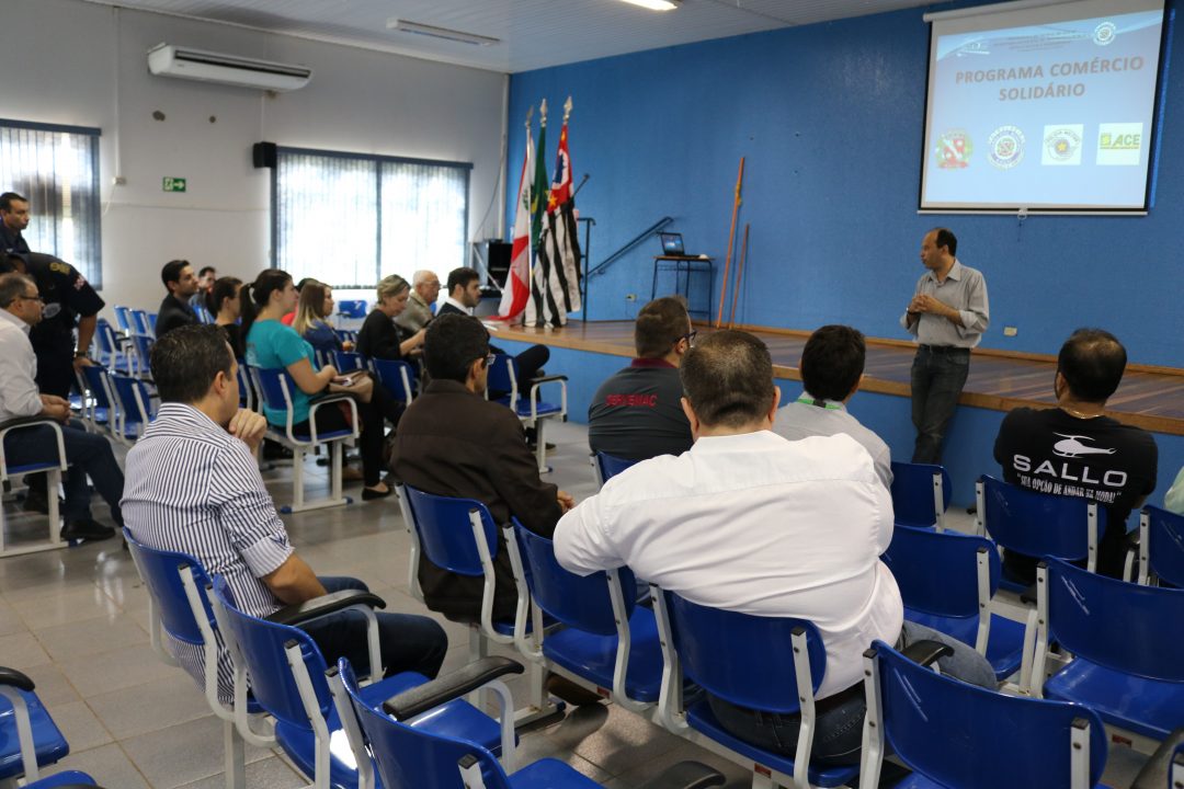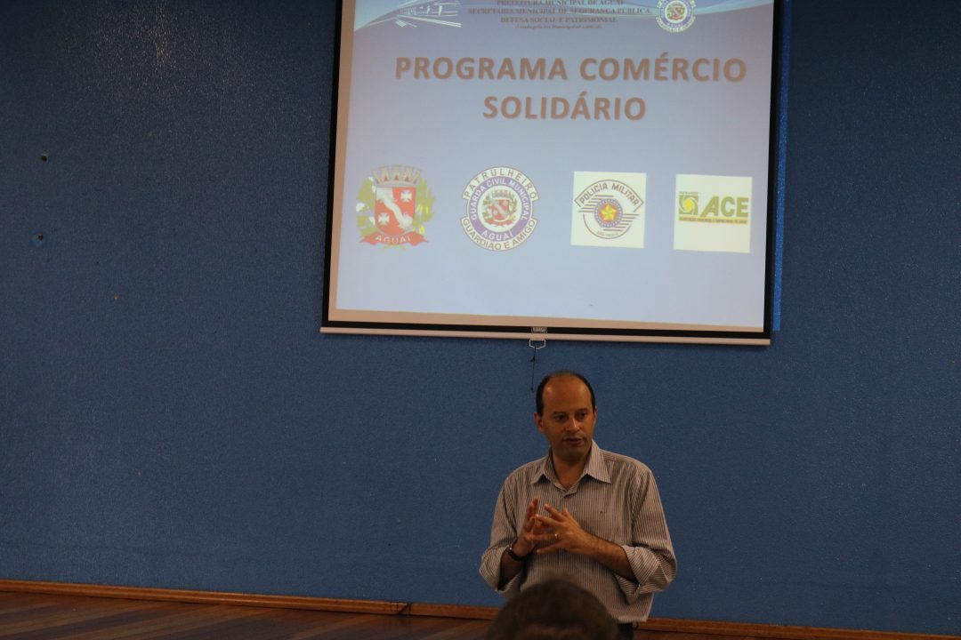 Aconteceu na manhã de hoje ontem, 30, no auditório da Escola Joaquim Giraldi a primeira reunião do Programa “Comércio Solidário” que contará com a participação efetiva da Polícia Militar e da Guarda Civil Municipal. Estiveram presentes, o prefeito Alexandre Araújo; o secretário de Segurança Pública, Osvaldo Vergílo Júnior; o comandante do Pelotão de Aguaí, Ten André Ciamponi; o gerente da ACE, Wanderley da Silva Campos, vereadores e comerciantes do Centro da cidade.