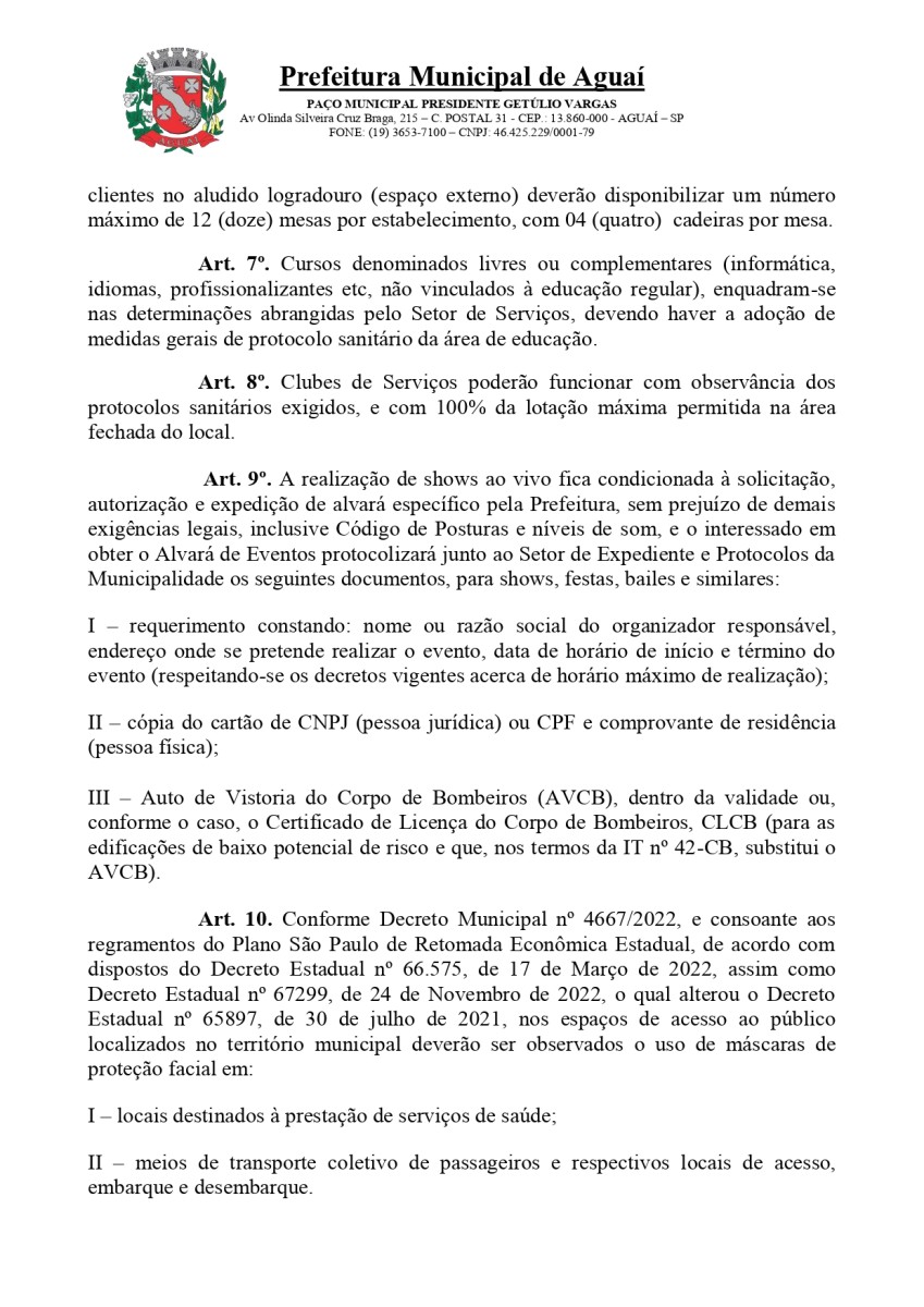 Nos espaços de acesso ao público localizados no território municipal deverão ser observados o uso de máscaras de