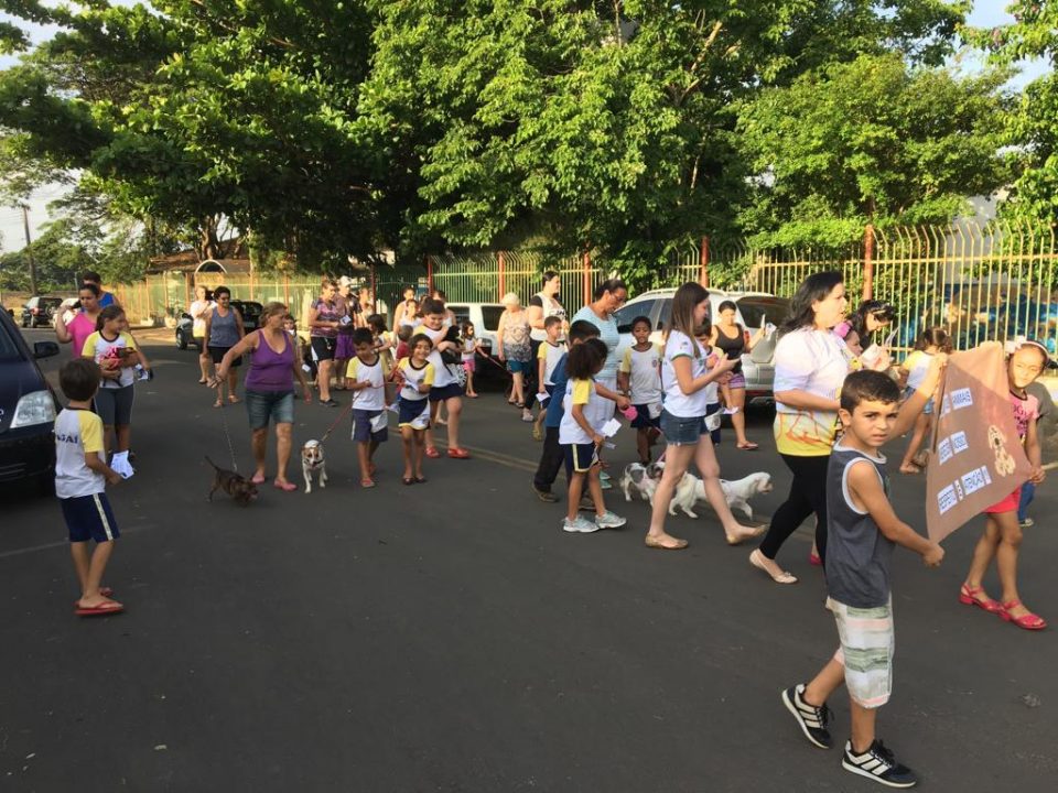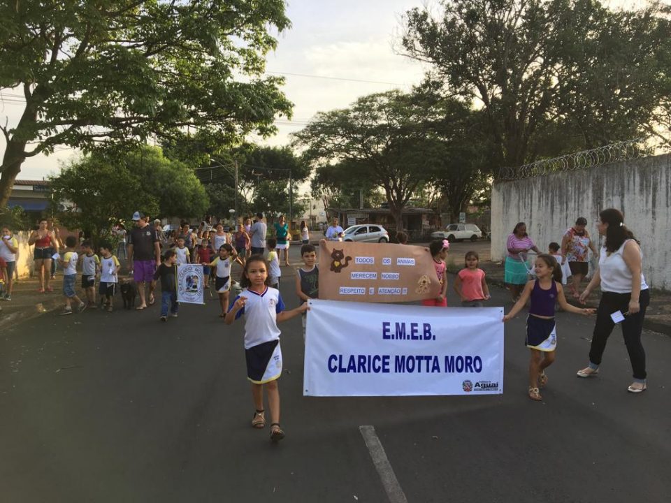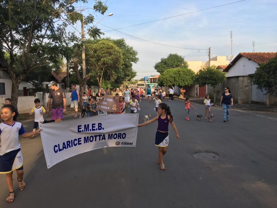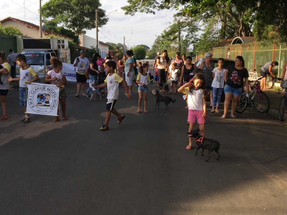 A Escola Municipal Clarice Motta Moro realizou na última semana, a Primeira Cãominhada – caminhada com animais de estimação dos alunos. A iniciativa partiu das professoras Helen Branco e Sandra Firmino, que atuam com 1º ano do ensino fundamental. A atividade envolve o tema “Proteção e Cuidados com os Animais”, conteúdo didático que está sendo abordado com os estudantes por meio do Programa A União Faz a Vida, que ensina os cuidados com alimentação, higiene e proteção de animais.