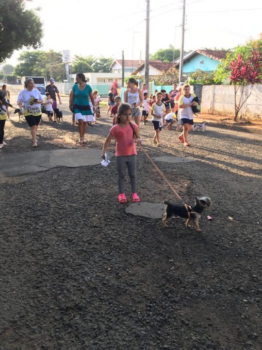 O passeio contou com a presença dos alunos, pais e comunidade da Vila Braga que levaram seus cães para a Cãominhada.