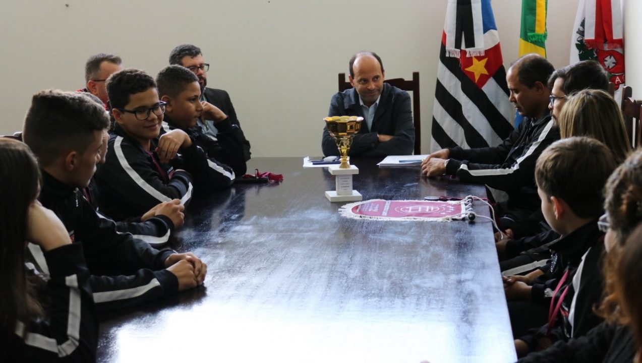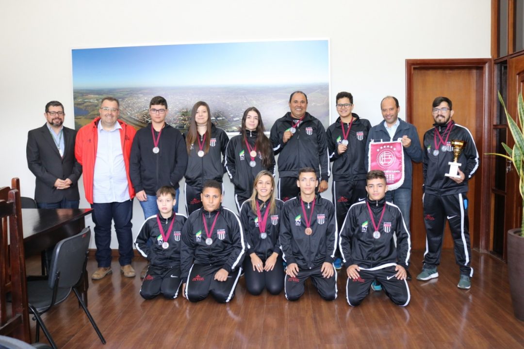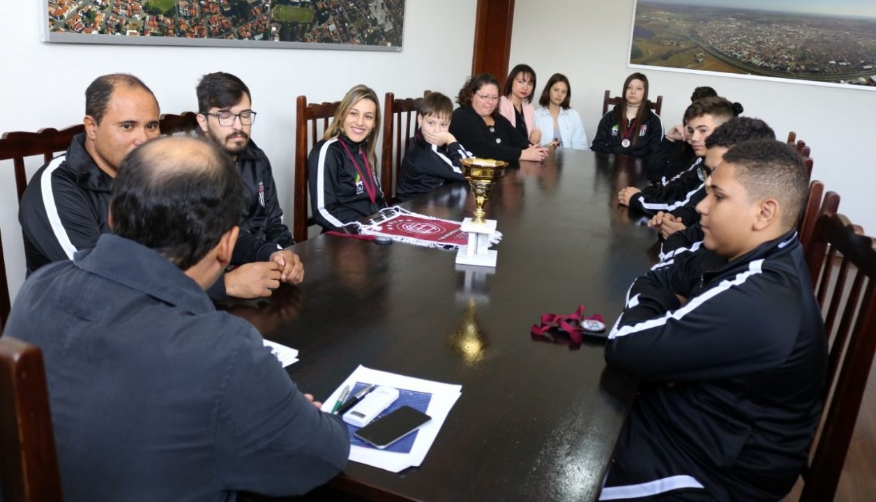 Na oportunidade os atletas exibiram suas medalhas e troféu de segundo colocado na pontuação geral. O sensei Diego relatou ao prefeito a experiência de participar de um evento de alto nível e internacional.