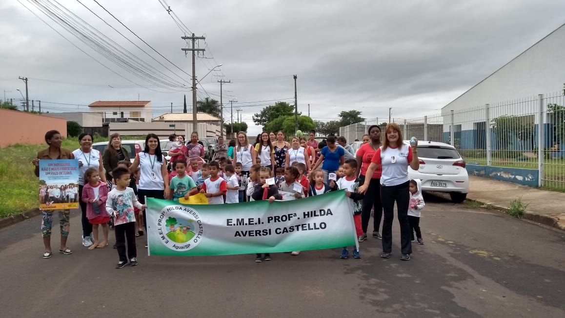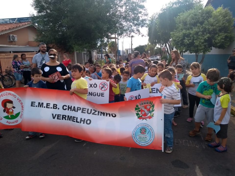 Algumas escolas fizeram também passeatas ao entorno das unidades, com muito barulho, distribuição de panfletos e coleta de materiais que possam acumular água, a fim de conscientizar toda a população sobre os cuidados e riscos com o mosquito Aedes aegypti, transmissor da Dengue, Chikungunya, Zika e Febre Amarela.