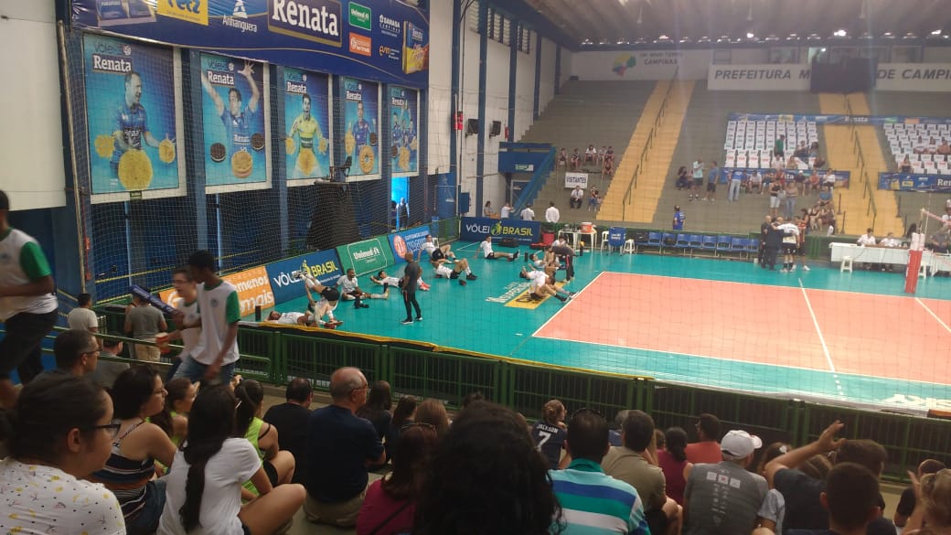 Acompanhados pelo professor Lalau, os estudantes presenciaram a disputa entre Vôlei Renata (Campinas) e Corinthians Paulista, onde a equipe campineira levou a vitória por 03 x 01.
