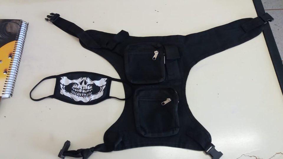 O jovem foi identificado e conduzido até a Delegacia de Polícia onde foi solicitada a presença dos responsáveis do adolescente e a ocorrência foi registrada. A máscara e o coldre foram apreendidos.