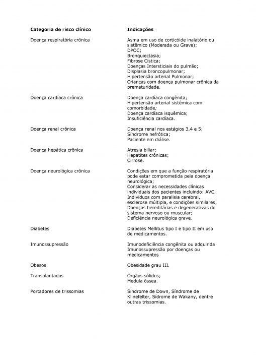 – Pessoas portadoras de doenças crônicas não transmissíveis e outras condições clínicas especiais independe da idade.