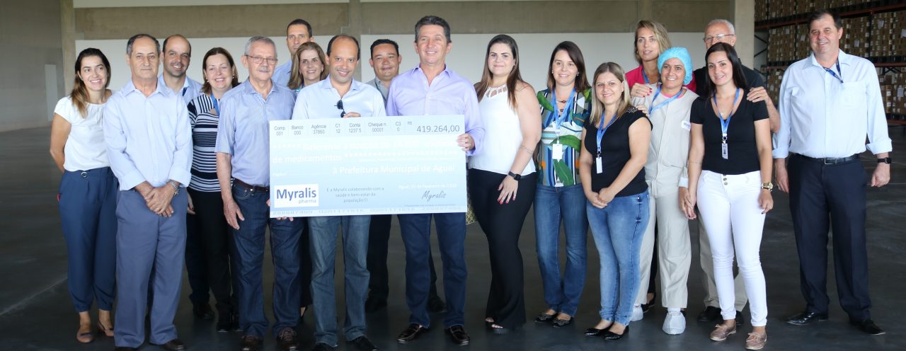 A Myralis atua na fabricação de produtos farmacêuticos sólidos, semi-sólidos e líquidos. Durante a cerimônia a empresa fez também a entrega simbólica de um cheque ao município, na importância de R$ 419.264,00 referentes à doação de 14.800 unidades de medicamentos (Cáceos Kids, Puravit Mult, Puravit ADE, Unizinco, Venolise, Tensart e DPrev), demonstrando a atenção com a saúde e bem estar da população aguaiana. De acordo com a Secretária de Saúde, Silvia Valota, os medicamentos serão utilizados nas unidades de saúde da cidade, de acordo com a necessidade e prescrição médica.