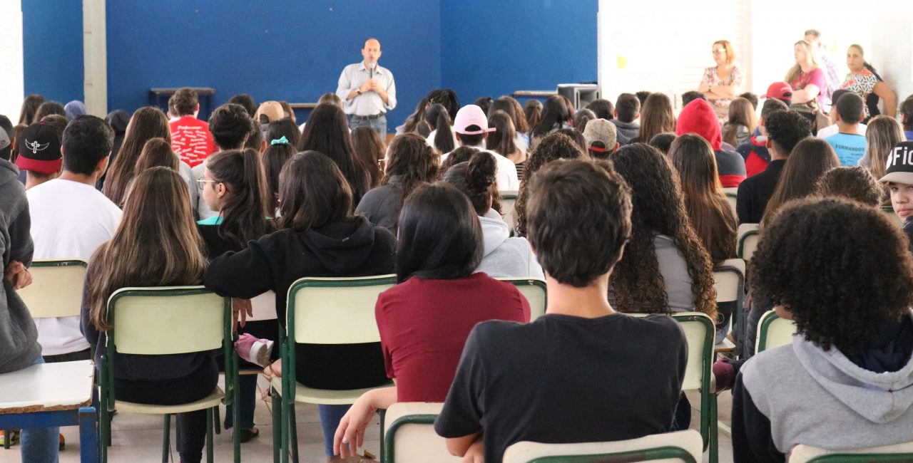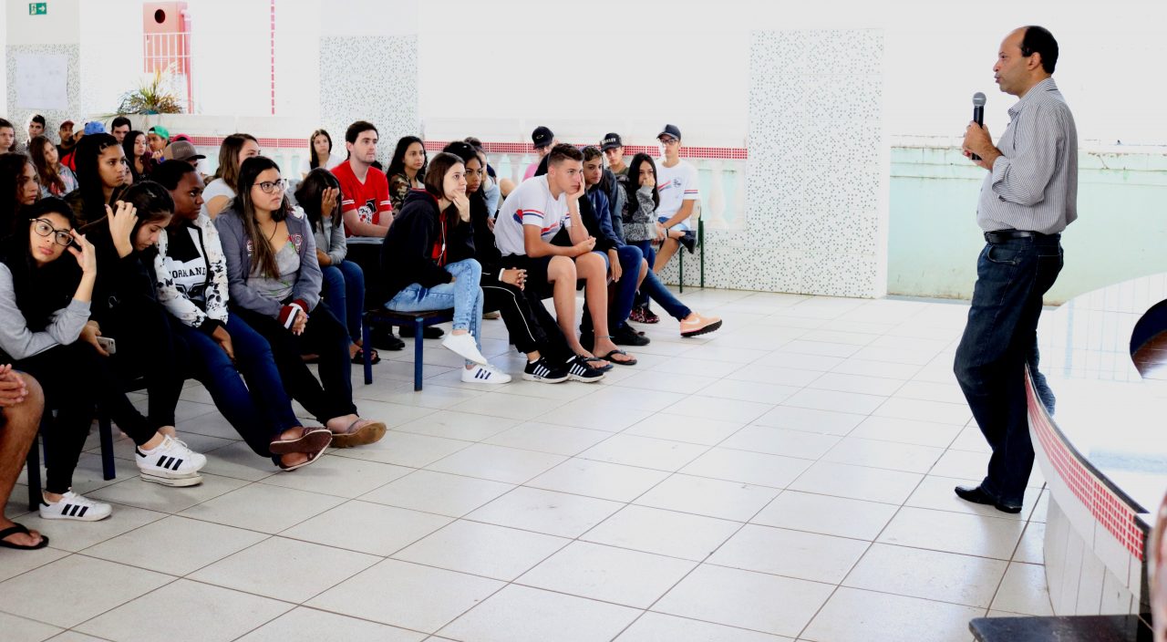 O prefeito Alexandre Araújo a convite da professora Yara Passini esteve na manhã de ontem 26, na Escola Estadual Padre Geraldo onde palestrou para os alunos do Ensino Médio. O objetivo foi disseminar aos alunos, mostrando como funciona na prática, os conteúdos aprendidos na grade curricular cujo tema foi “Participação Política”, na disciplina de Filosofia, onde aprenderam sobre pertencimento e valores da democracia. Os alunos dos 1ºs anos, em especial, trabalharam com a solução de problemas para a comunidade e escreveram cartas que foram entregues ao Prefeito.