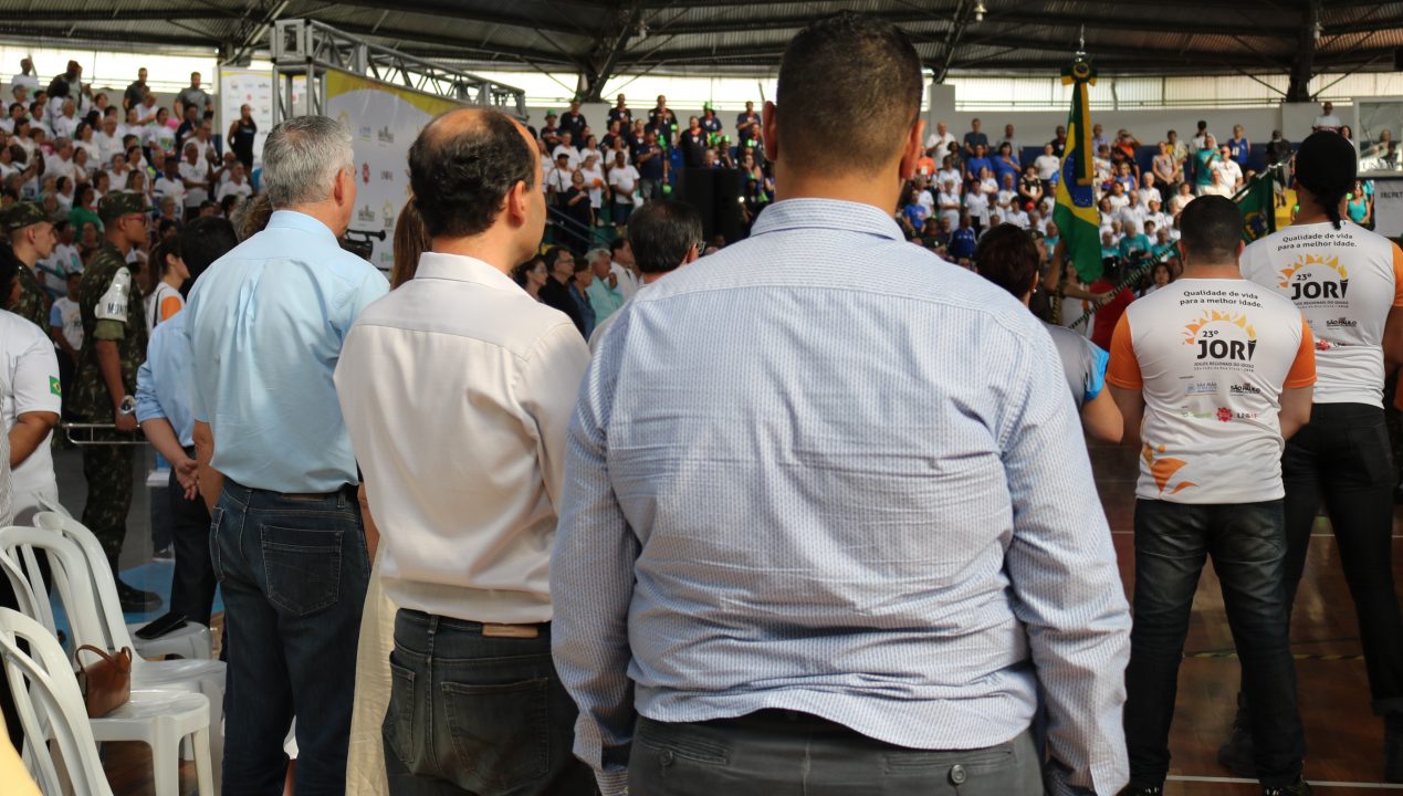 O prefeito Alexandre Araújo participou na tarde de hoje,15, da abertura dos Jogos Regionais do Idoso (JORI) que esse ano está sendo sediado em São João da Boa Vista. A abertura realizada no Centro de Integração Comunitária (CIC), contou com a presença das delegações das 43 cidades participantes do estado de São Paulo.