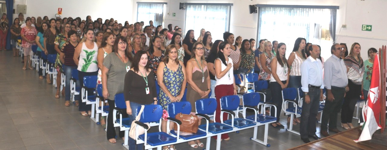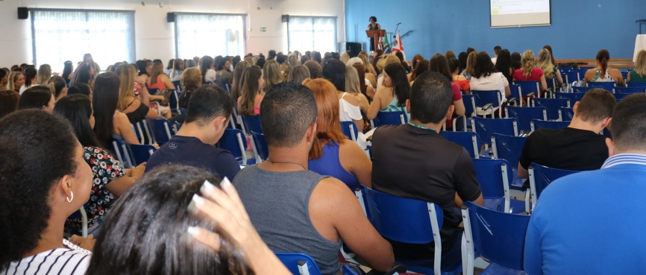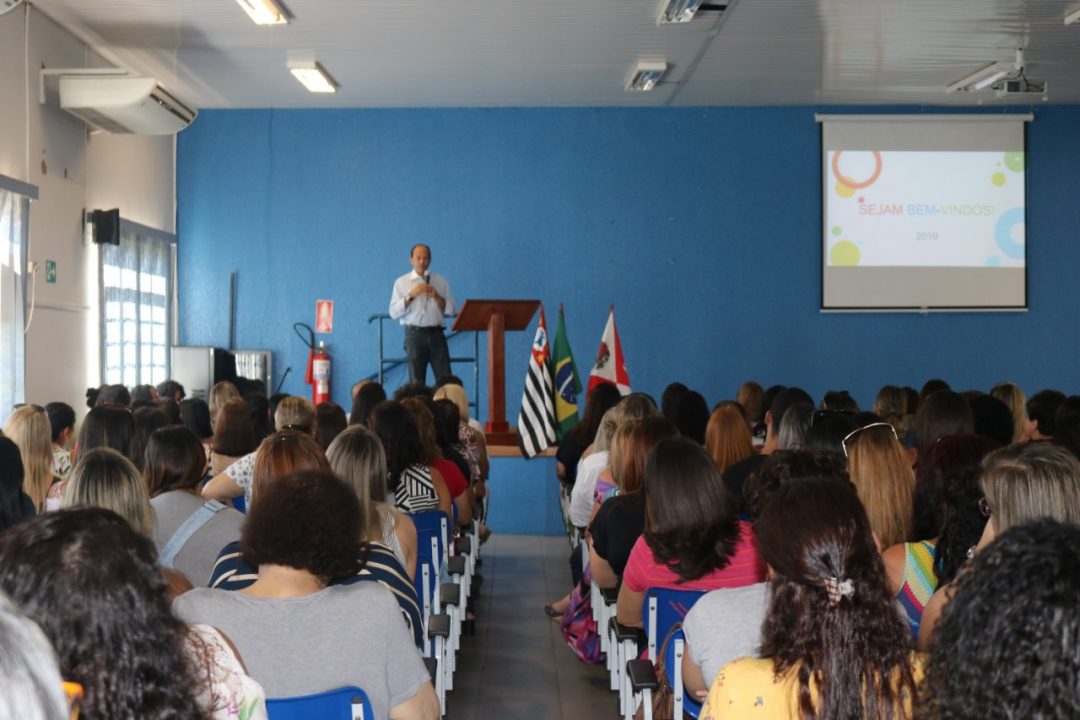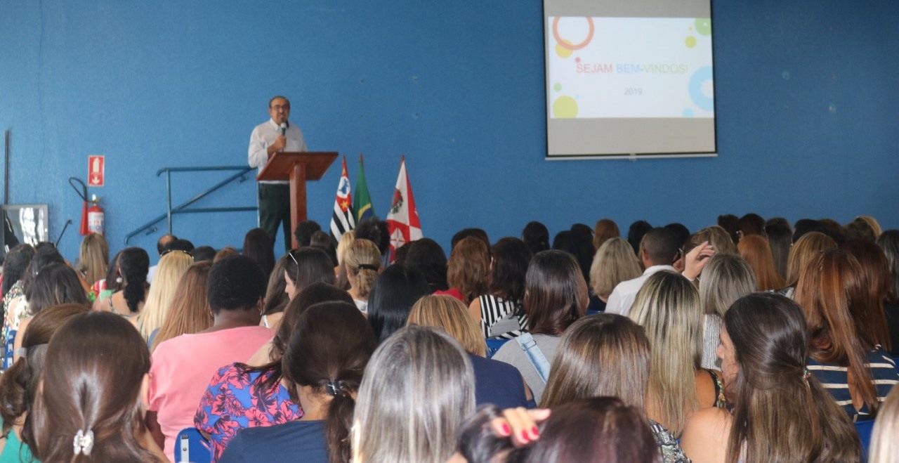 Professores, coordenadores e diretores da rede municipal de ensino participaram de uma reunião de planejamento do ano letivo de 2019, que aconteceu no auditório da Escola Joaquim Giraldi na manhã desta segunda-feira (28).