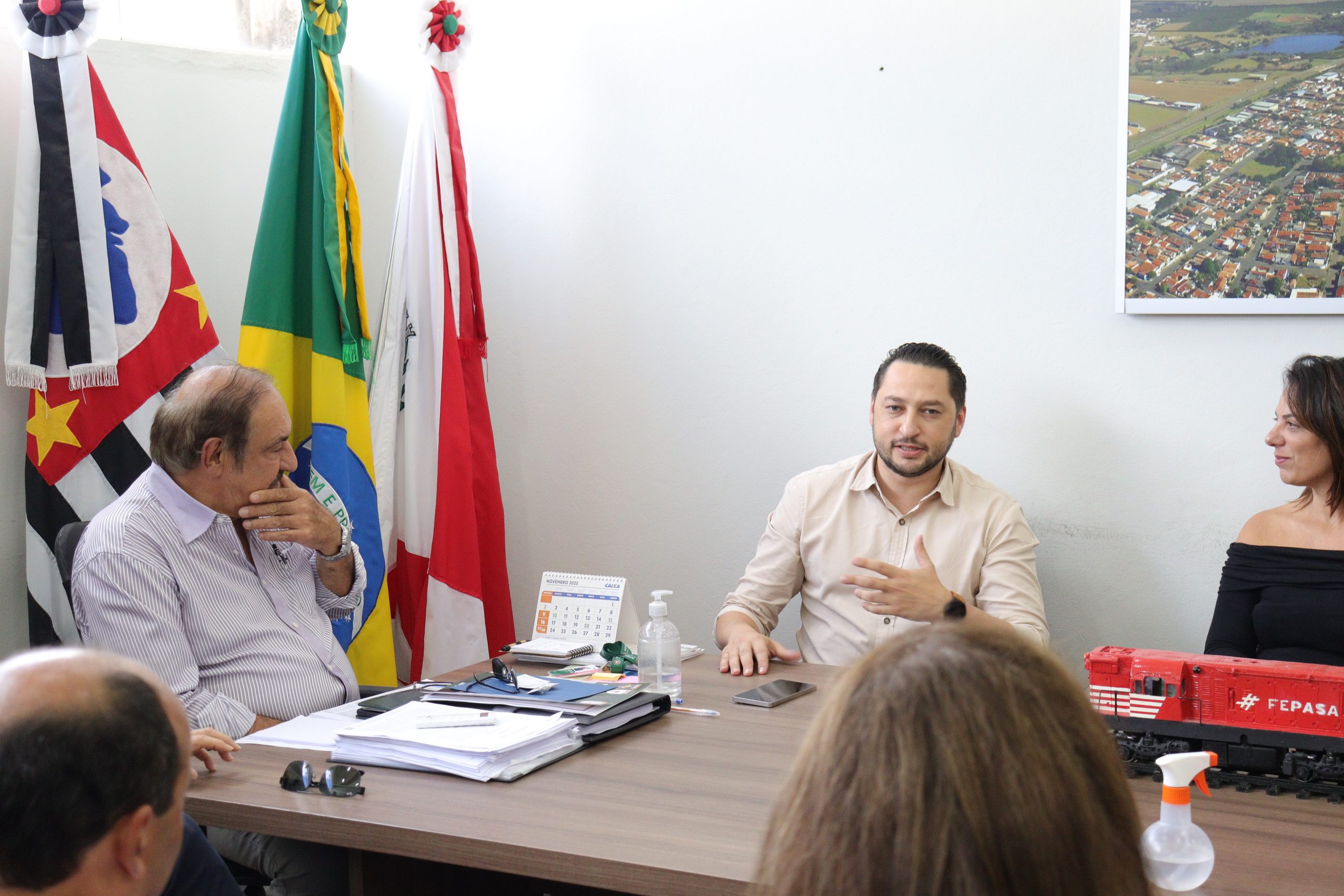 O prefeito Gilberto Selber e o vice-prefeito Jonas Bicaio, receberam na tarde de hoje,04, no gabinete municipal, o diretor Técnico do Sebrae SP, Marco Vinholi. A reunião contou com a presença de secretários municipais, vereadores e do ex prefeito Alexandre Araújo (Nê).