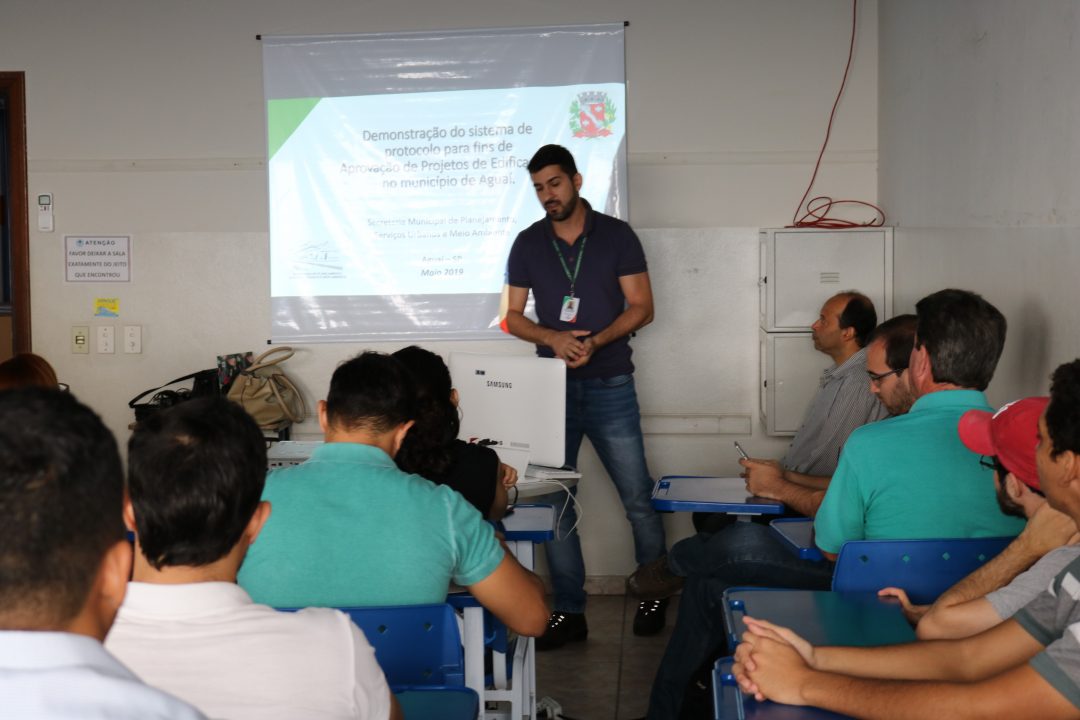 Na manhã de hoje, 16, a Secretaria de Planejamento, Serviços Urbanos e Meio Ambiente realizou uma apresentação de demonstração do sistema de protocolo online de Aprovação de Projetos de Edificações no município de Aguaí, disponível no site da Prefeitura, e explanada pelo engenheiro de carreira, Luiz Guilherme Pimenta.