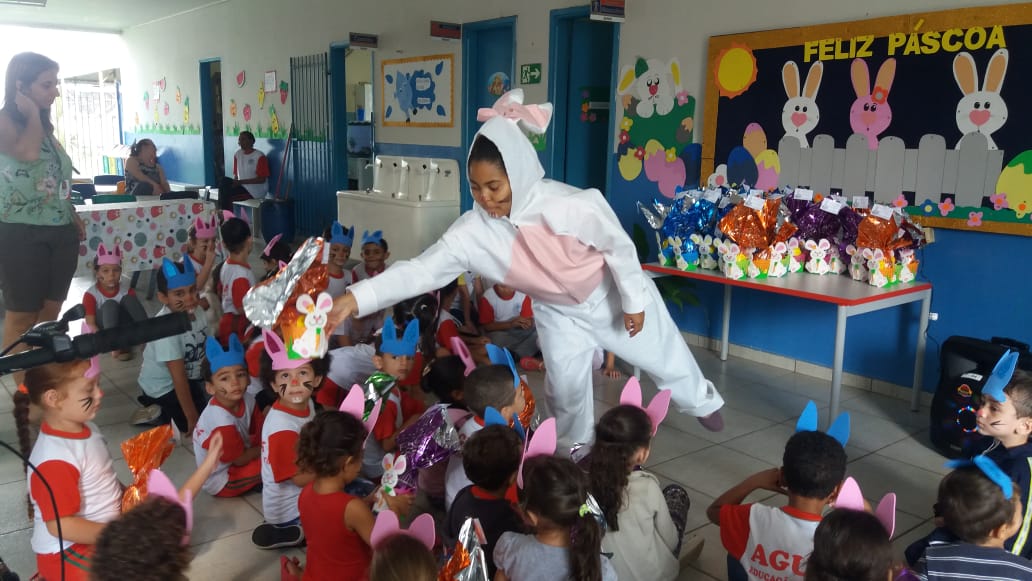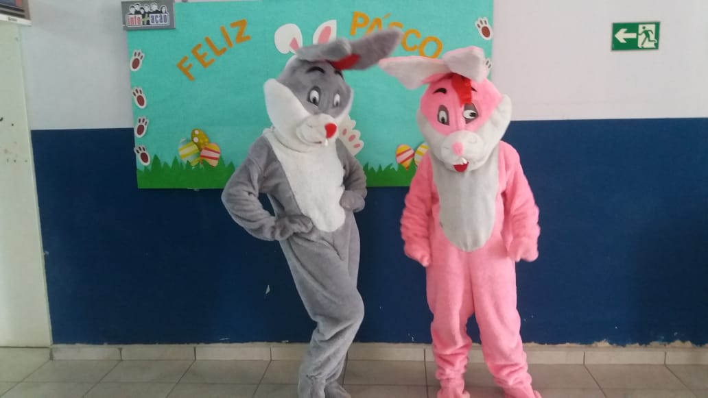 As creches e escolas de educação Infantil ainda receberam visita dos coelhos