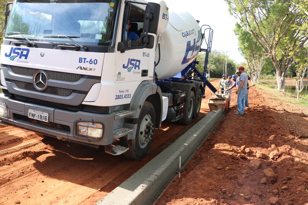 Nessa semana estão sendo construídas as guias da pista de caminhada.