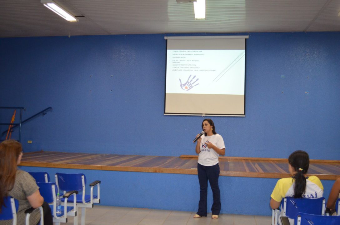 Aline de Lima, uma das voluntárias do projeto deu inicio ao evento apresentando o “Escola de Pais, além de ressaltar a importância dos temas abordados que visam esclarecimentos sobre o papel da família e suas responsabilidades.